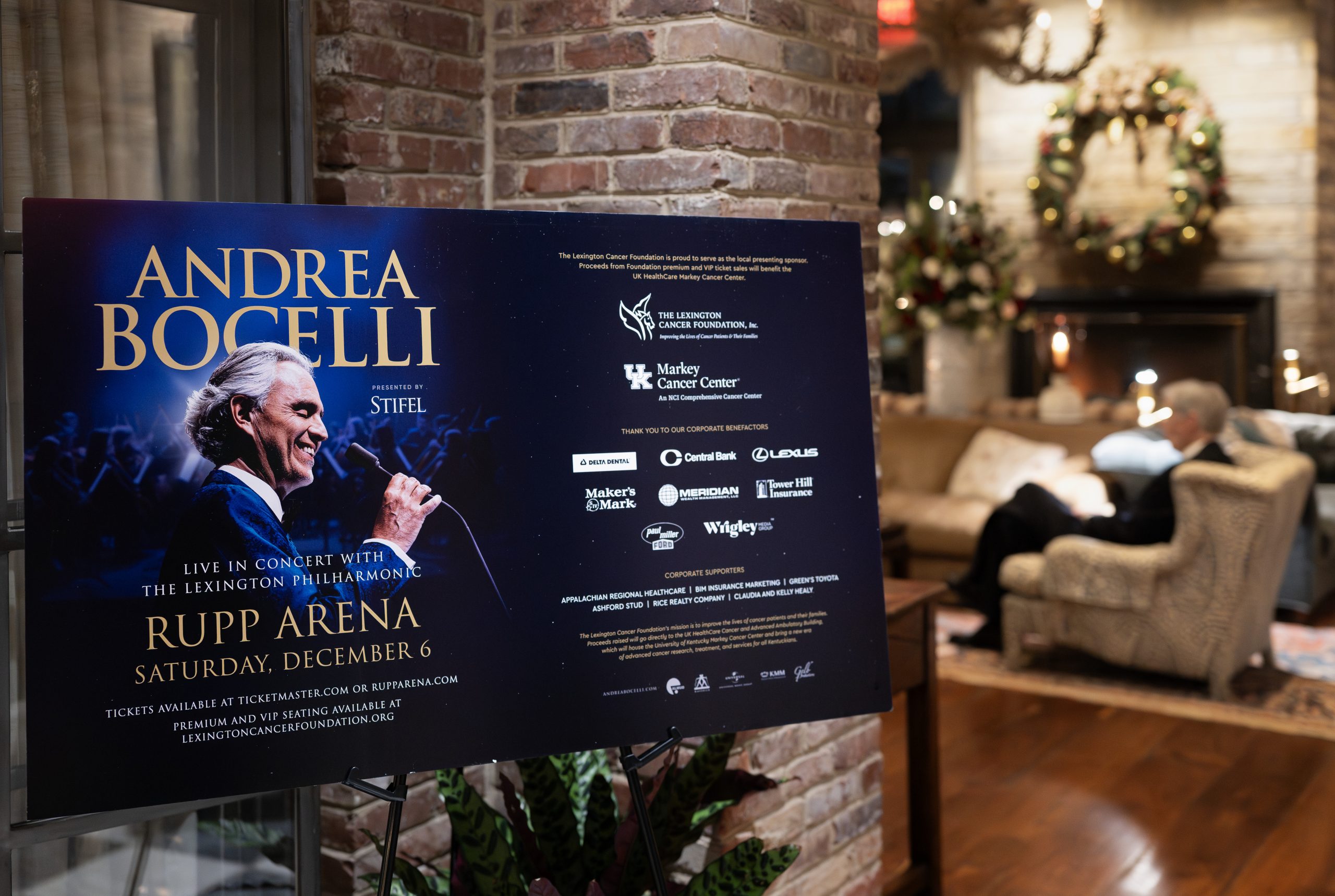 The Lexington Cancer Foundation (LCF) was honored to serve as the local presenting sponsor of the Andrea Bocelli concert held on Saturday, December 6, 2025, at the Central Bank Center in Lexington, Kentucky. To celebrate this extraordinary event, LCF hosted a gala the evening prior—Friday, December 5—at The Apiary in downtown Lexington.